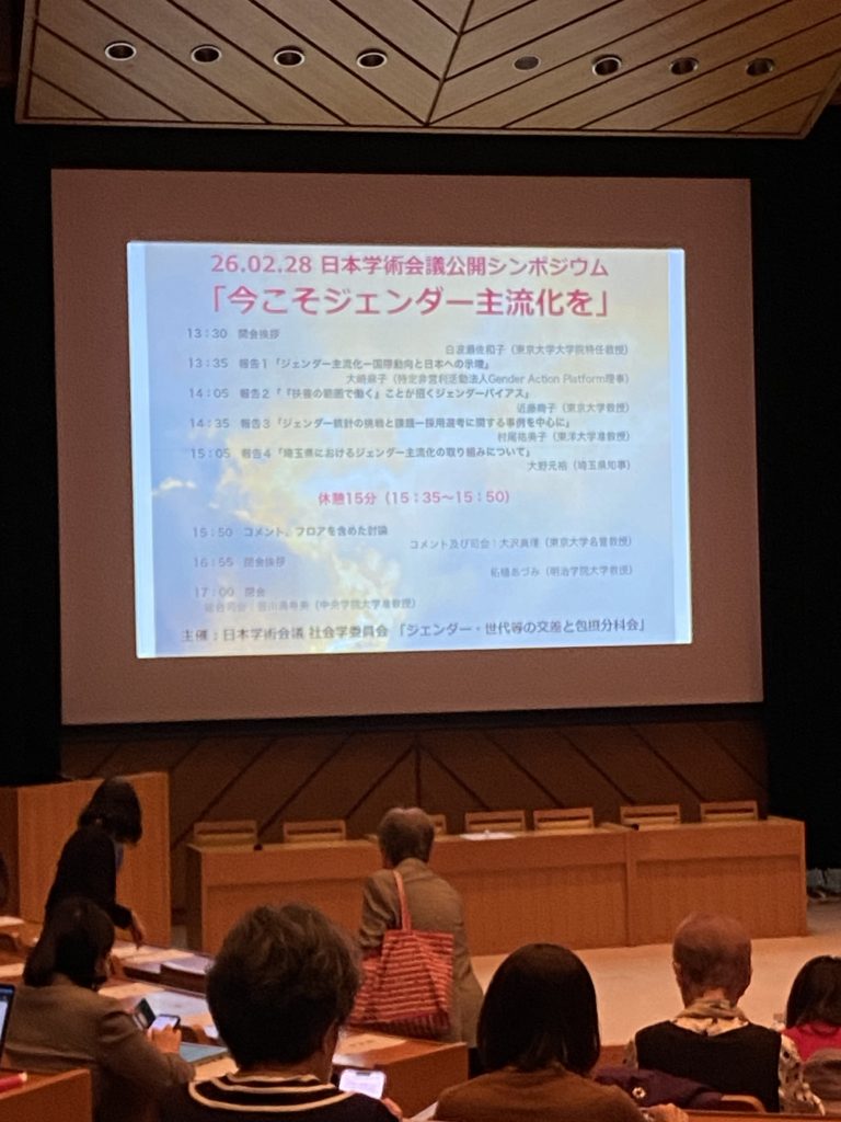 2月28日、日本学術会議の「今こそジェンダー主流化を」というテーマの公開シンポジウムに参加してきました。このようなシンポジウムに参加することは無かったので新鮮な感覚です。六本木にある学術会議の講堂で開催されました。